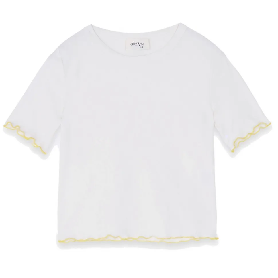 Ottod’Ame T-shirt, short model with crew neck, half sleeve, in stretch ribbed fabric, with wavy hem in contrasting colour.