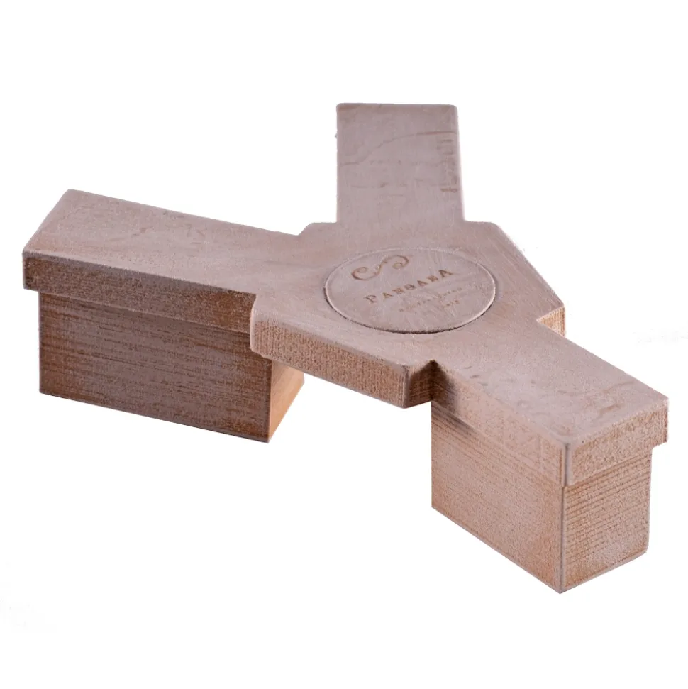 PangaeA Y is packaged in a design box in wood / pla, an eco-friendly compound of wood and wheat pulp.