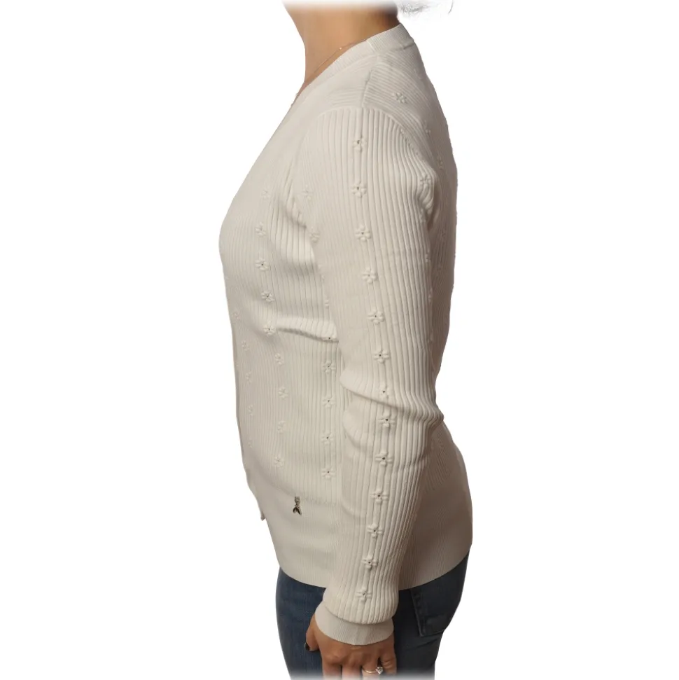 Patrizia Pepe – Cardigan Model with Buttons and V-neck – White – Pullover – Made in Italy – Luxury Exclusive Collection