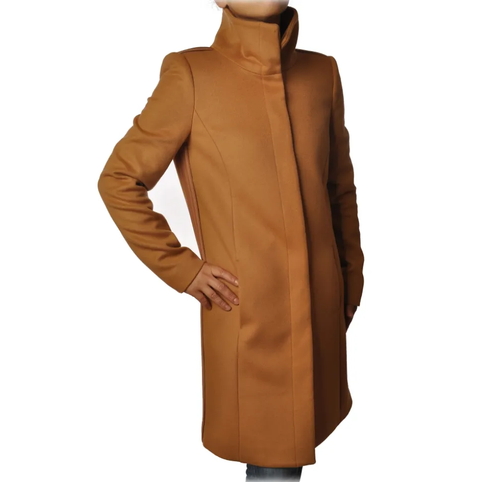 Patrizia Pepe – Coat 3/4 Screwed in Cloth with Standing Collar – Mustard Brown – Jacket – Made in Italy – Luxury Exclusive Collection