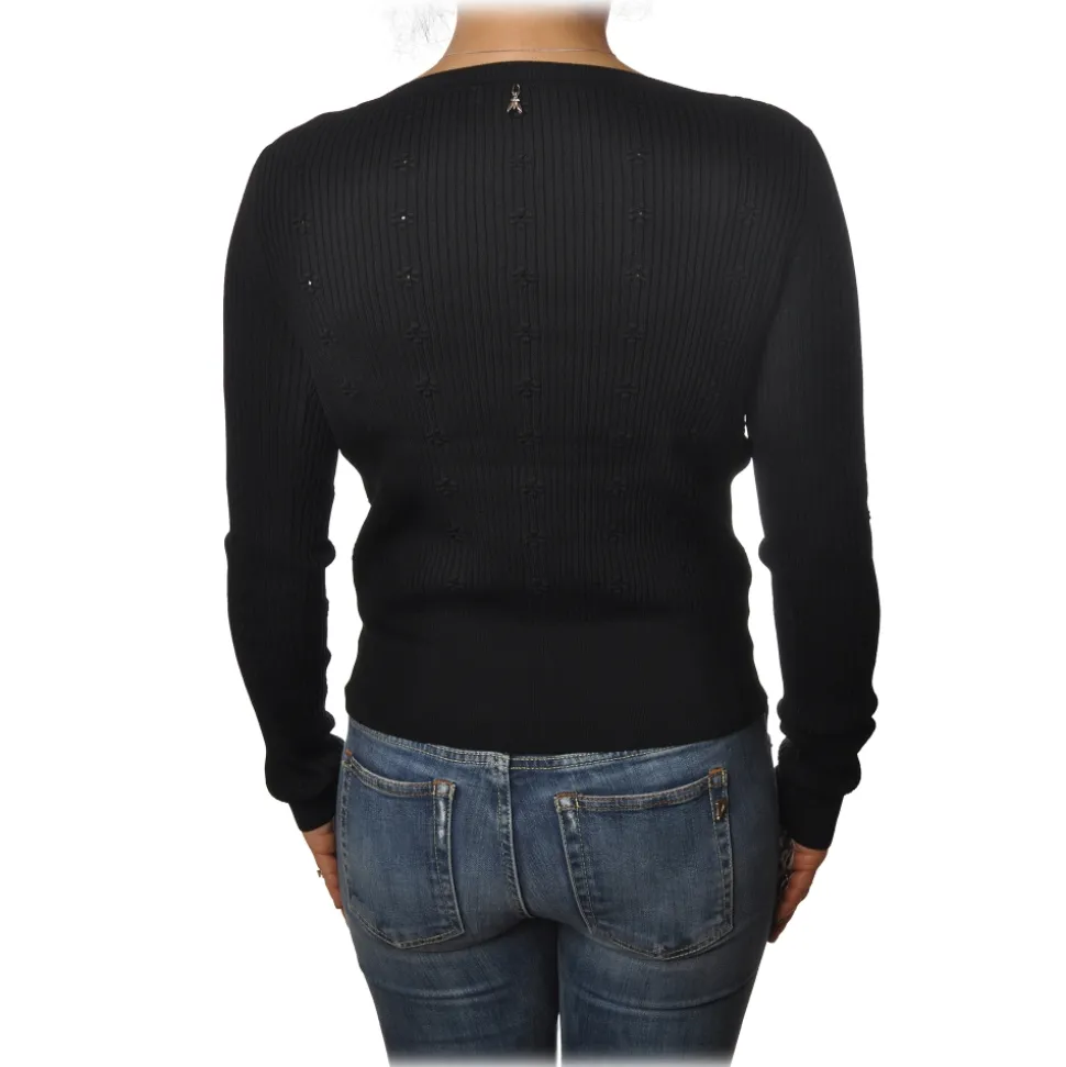 Patrizia Pepe – Crew-neck Ribbed Sweater – Black – Pullover – Made in Italy – Luxury Exclusive Collection