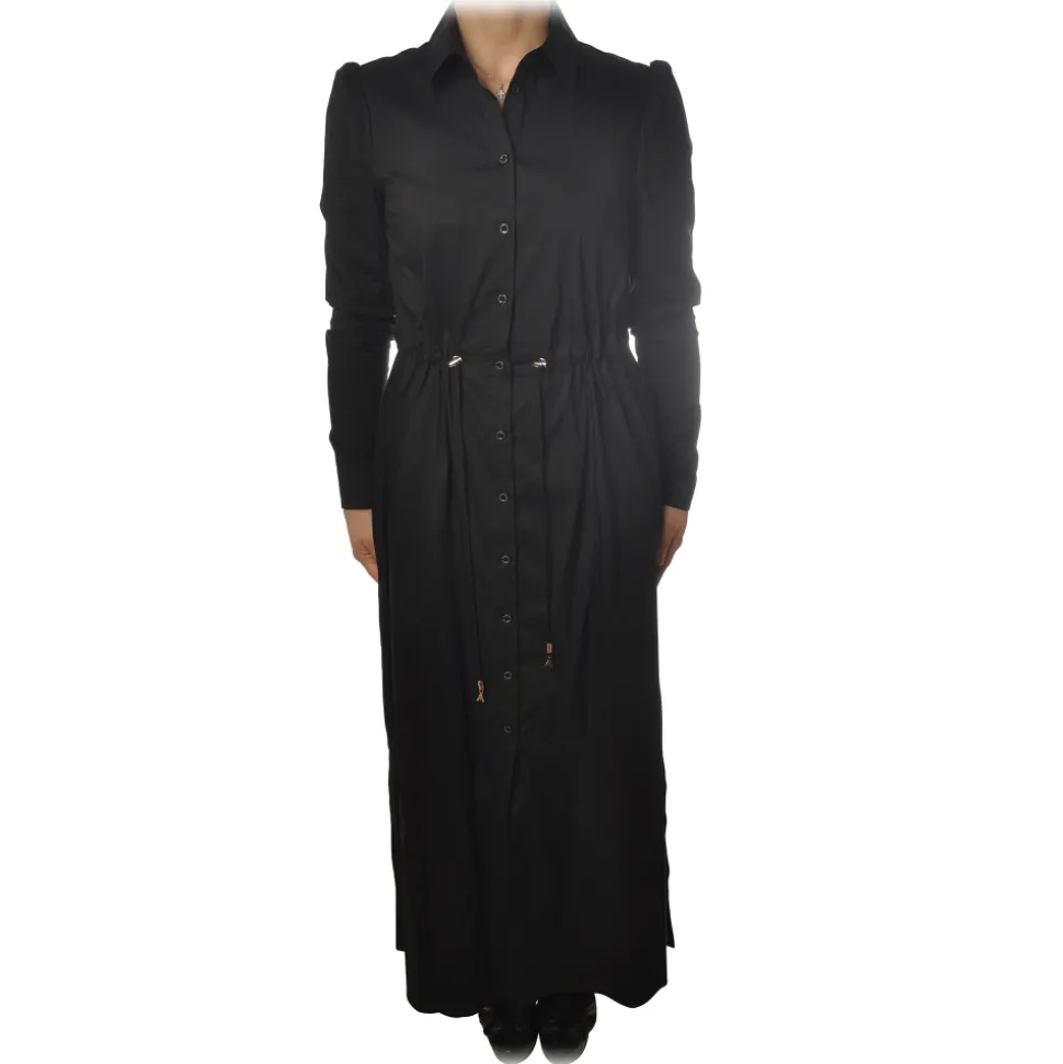Patrizia Pepe – Long Model Dress with Shirt Collar – Black – Dress – Made in Italy – Luxury Exclusive Collection
