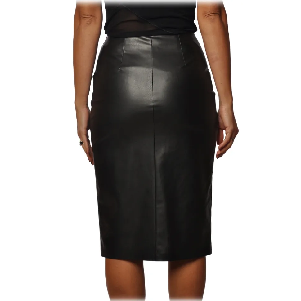 Patrizia Pepe – Midi Sheath Skirt in Faux Leather – Black – Skirt – Made in Italy – Luxury Exclusive Collection