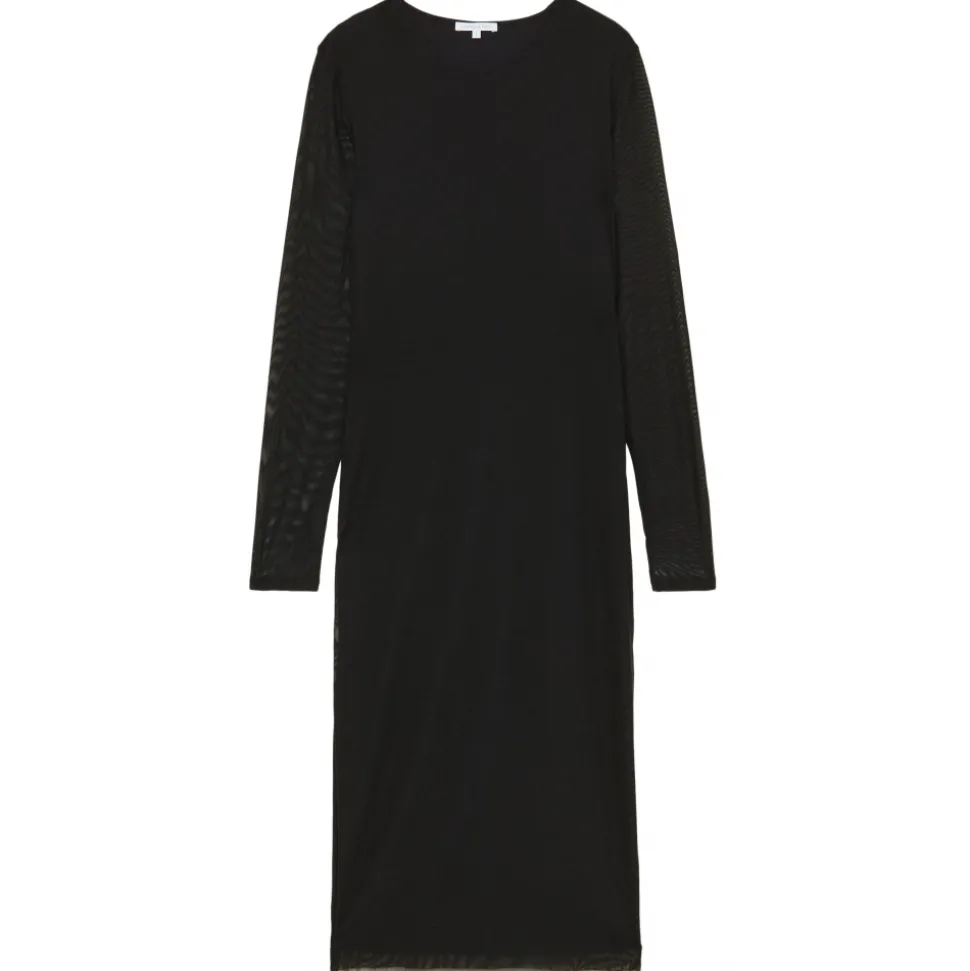 Patrizia Pepe sheath dress with round neck, long sleeve, midi length, in tulle with transparent sleeves.