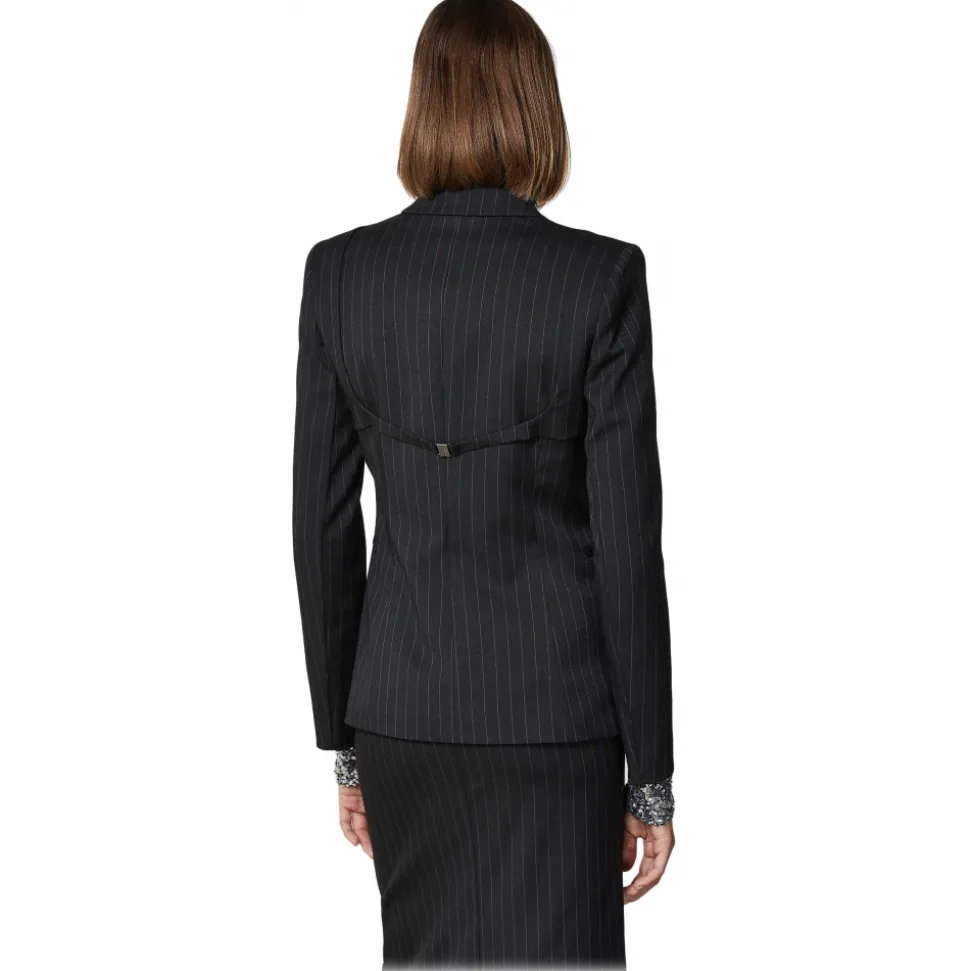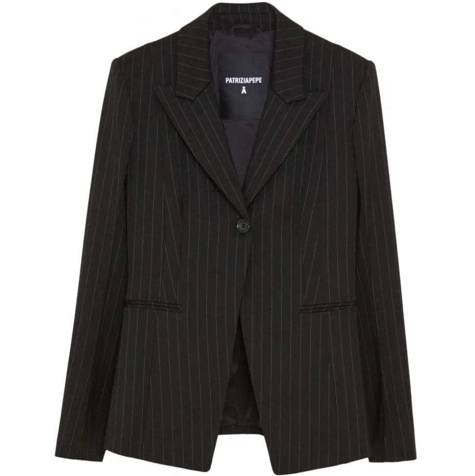 Patrizia Pepe – Single-Breasted Pinstripe Jacket – Black – Jacket – Made in Italy – Luxury Exclusive Collection