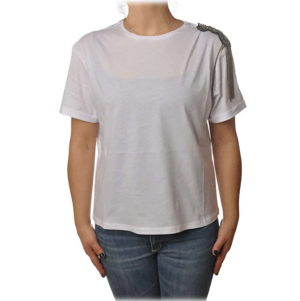 Patrizia Pepe – T-shirt Round-Neck Model with Brooch Detail – White – T-Shirt – Made in Italy – Luxury Exclusive Collection