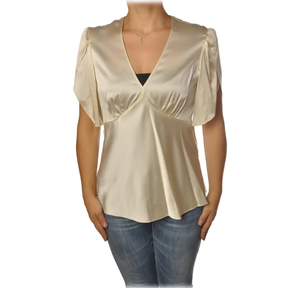 Pinko – Blouse William with Tulip-Shaped Sleeves in Silk – Ivory – Shirt – Made in Italy – Luxury Exclusive Collection