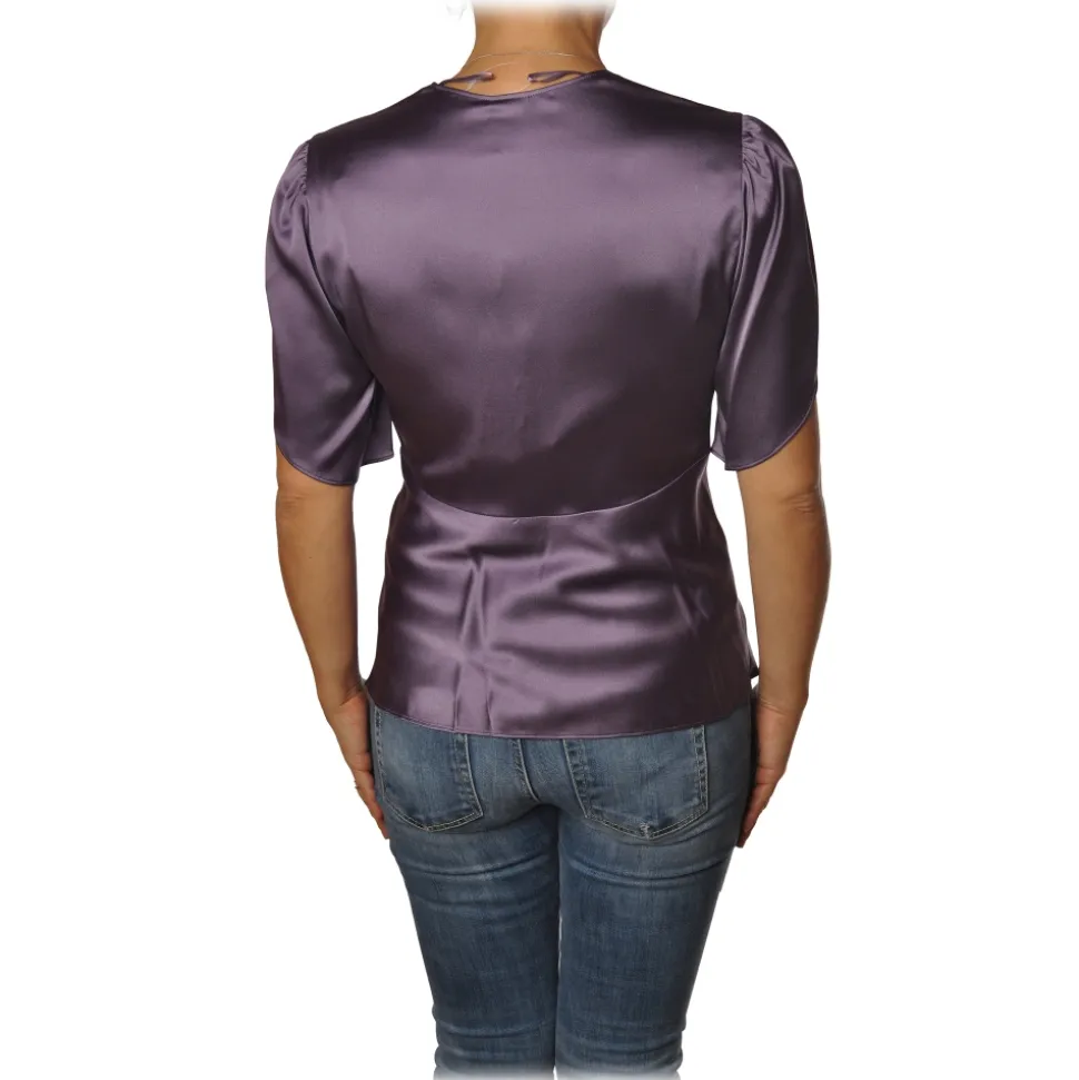 Pinko – Blouse William with Tulip-Shaped Sleeves in Silk – Purple – Shirt – Made in Italy – Luxury Exclusive Collection