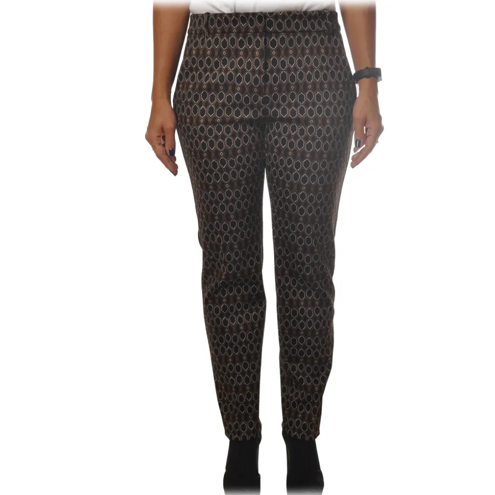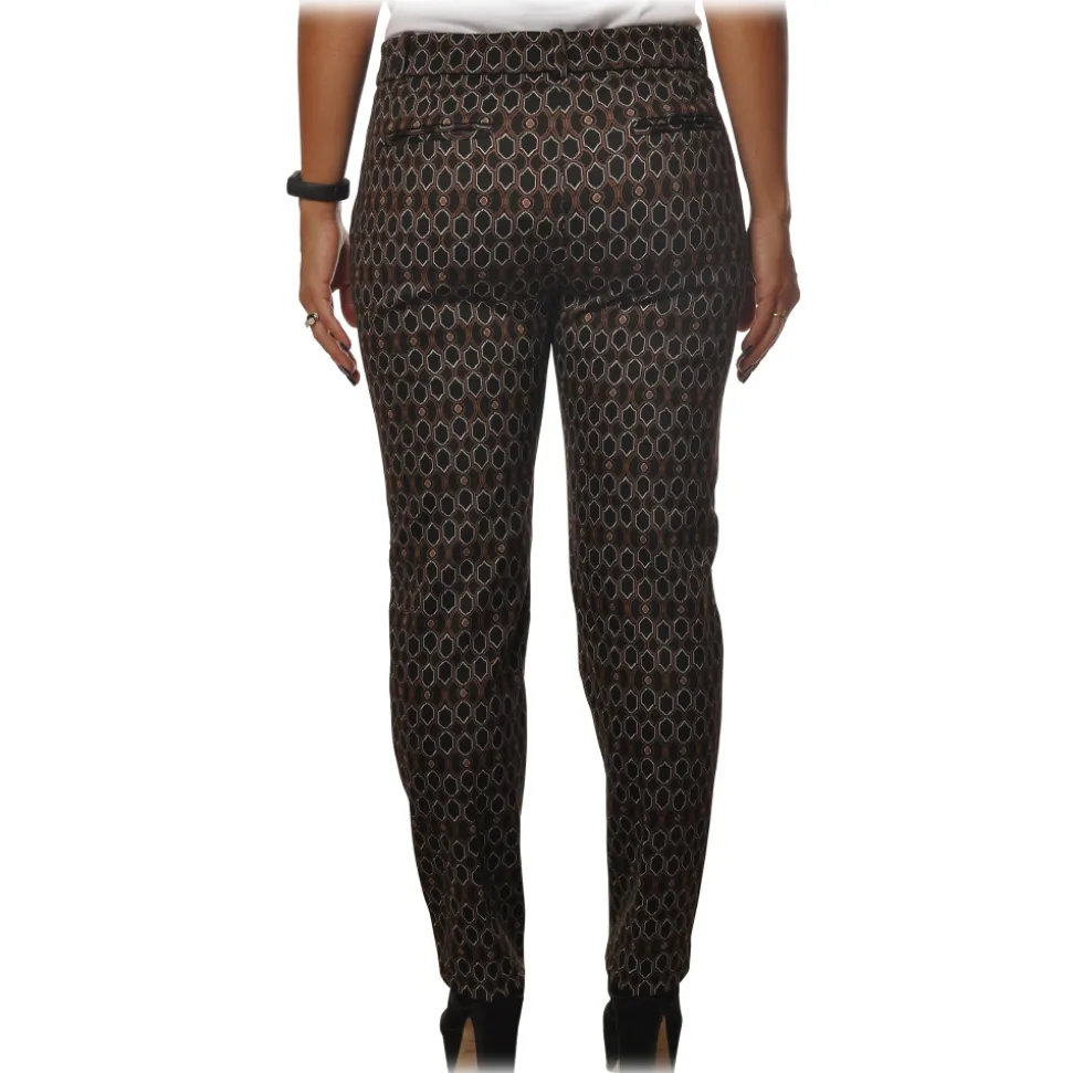Pinko – Cigarette Trousers Bello95 in Geometric Pattern – Black/Brown – Trousers – Made in Italy – Luxury Exclusive Collection