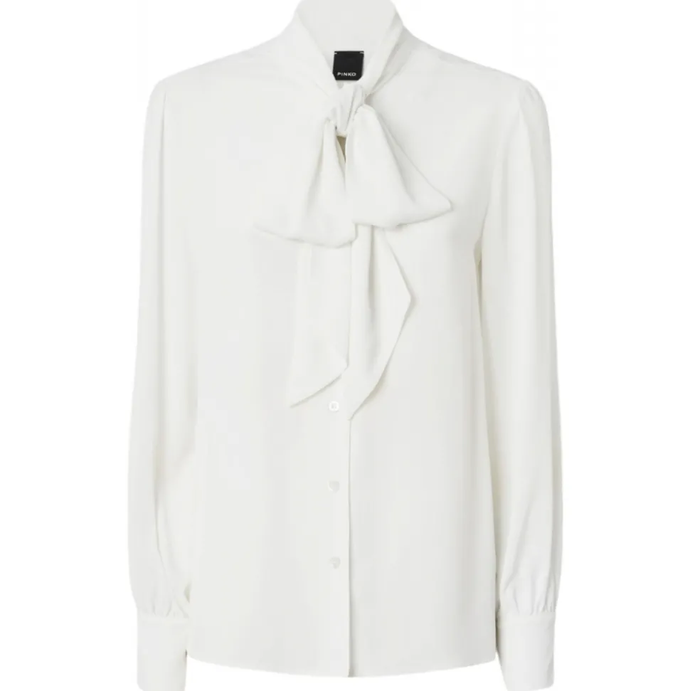 Pinko – Crepe Shirt with Bow – White – Shirts – Made in Italy – Luxury Exclusive Collection