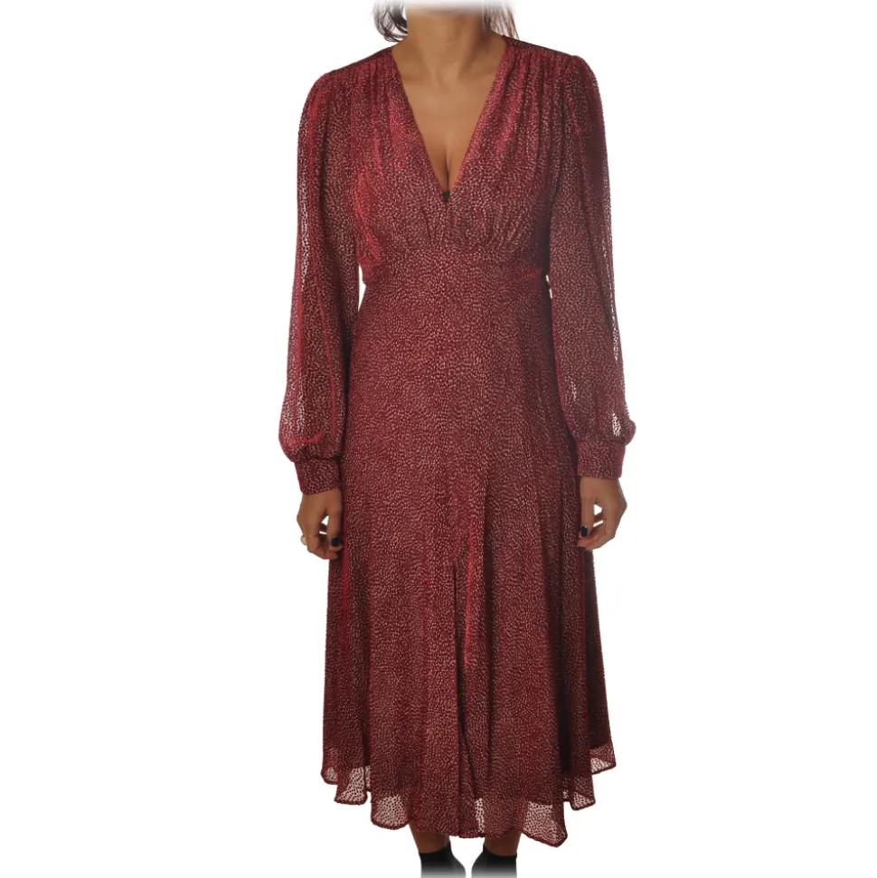 Pinko – Giovanni Dress Midi in Devorè Fabric – Bordeaux – Dress – Made in Italy – Luxury Exclusive Collection