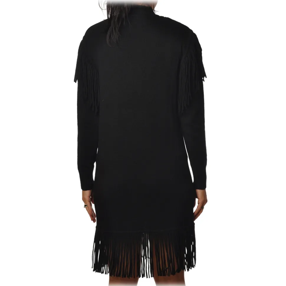 Pinko – Knitted Dress Sagrantino with Fringes – Black – Dress – Made in Italy – Luxury Exclusive Collection