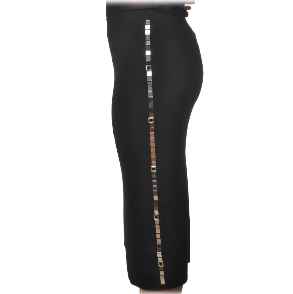 Pinko – Lounguette Skirt Russo with Side Mirror Applications – Black – Skirt – Made in Italy – Luxury Exclusive Collection