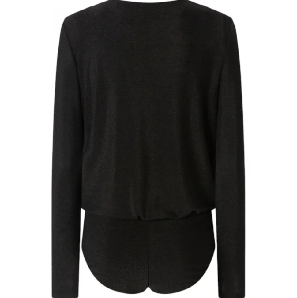 Pinko long-sleeved bodysuit in metallic-effect stretch viscose-blend jersey. Cross over silhouette in front, draped details.
