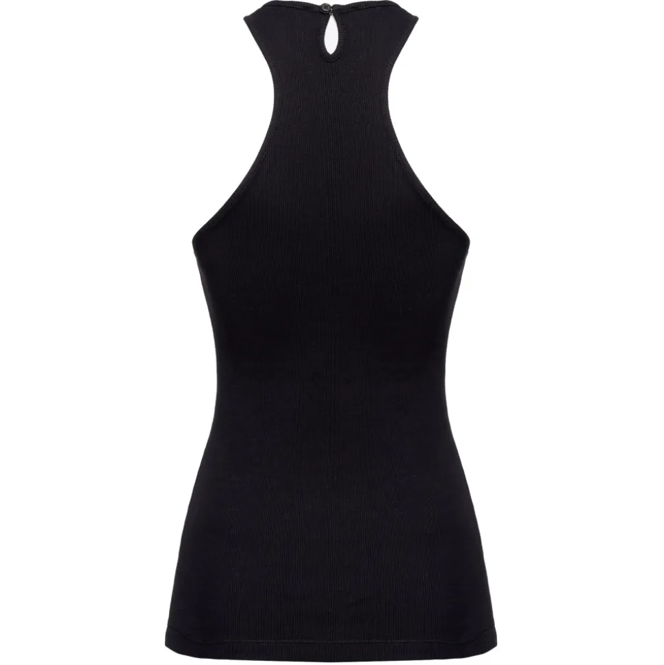 Pinko tank top, close-fitting in a rowing model, made entirely of ribbed cotton, with plated swallows logo on the front.