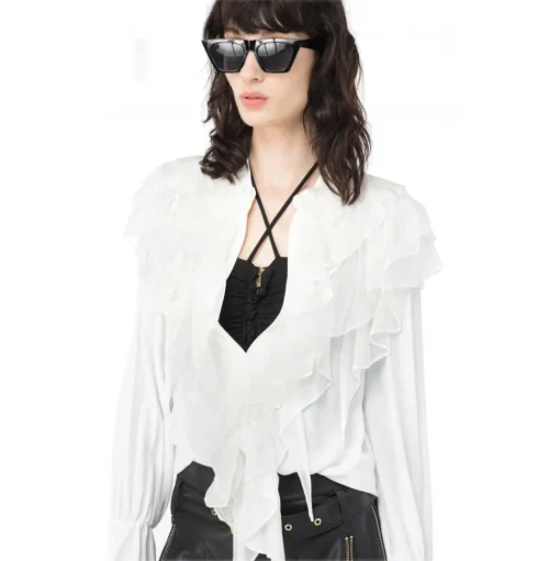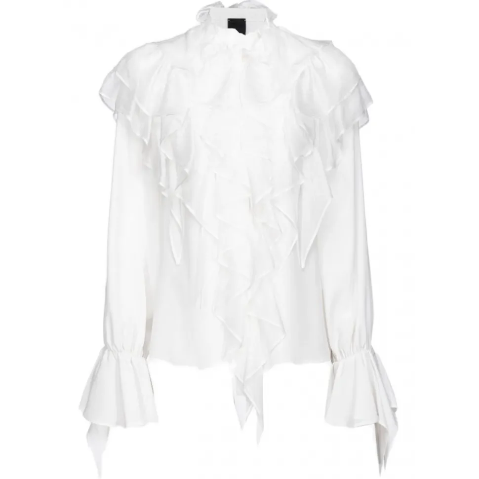 Pinko – Ruffled Blouse – White – Shirts – Made in Italy – Luxury Exclusive Collection