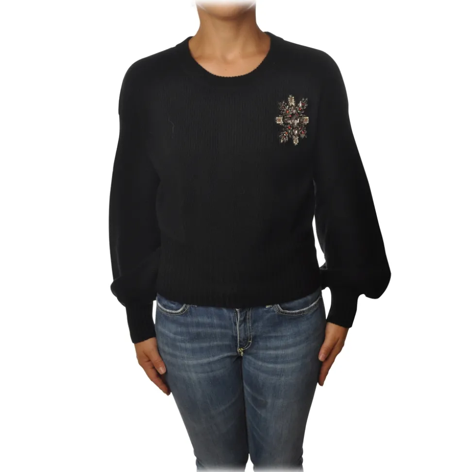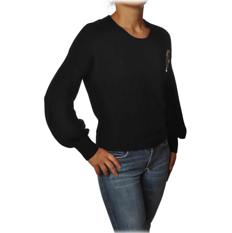 Pinko – Sweater Chissa Crewneck with Jewel Brooch – Black – Sweater – Made in Italy – Luxury Exclusive Collection
