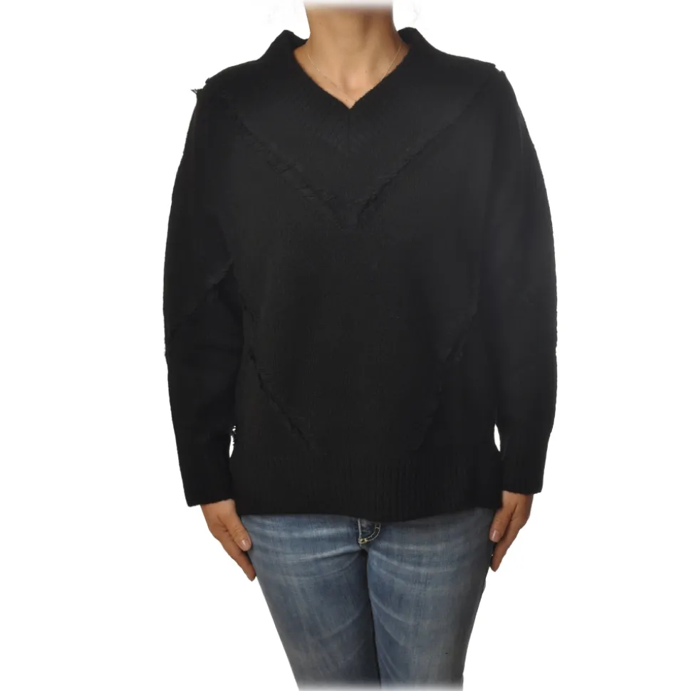 Pinko – Sweater Mozambico Oversized with V-neck – Black – Sweater – Made in Italy – Luxury Exclusive Collection