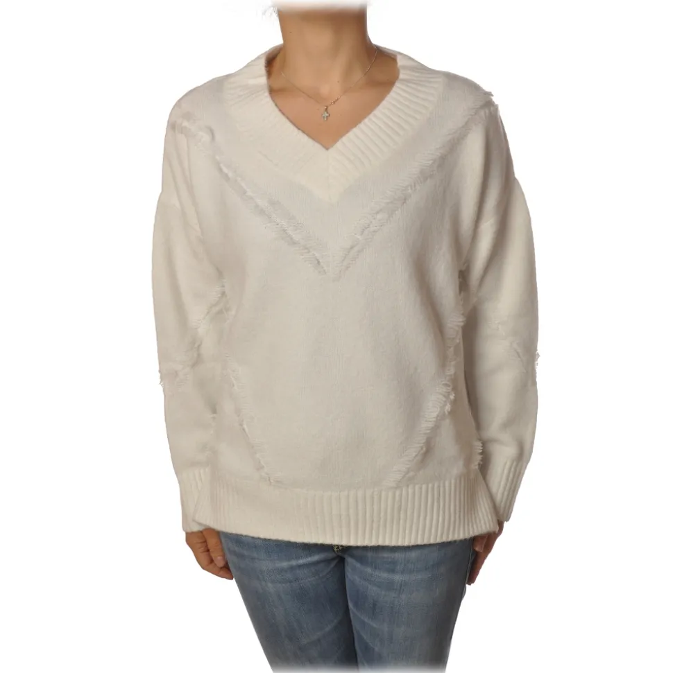 Pinko – Sweater Mozambico Oversized with V-neck – White – Sweater – Made in Italy – Luxury Exclusive Collection