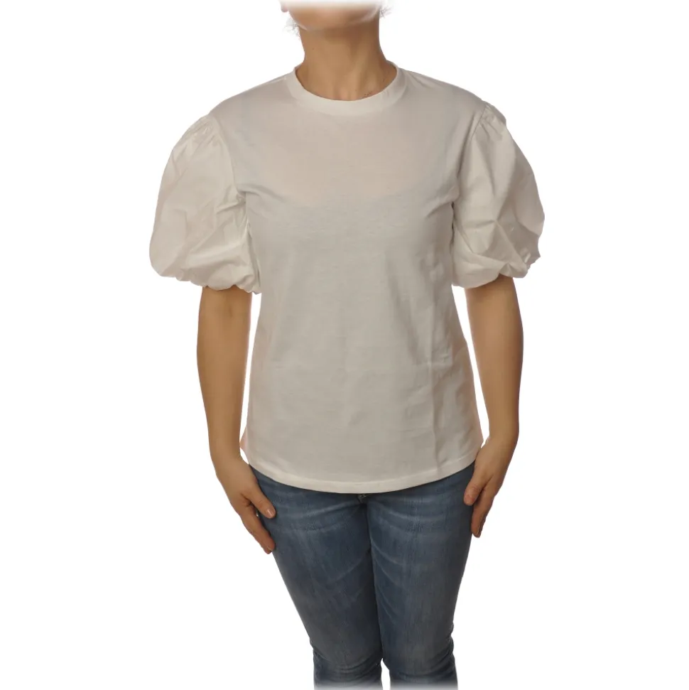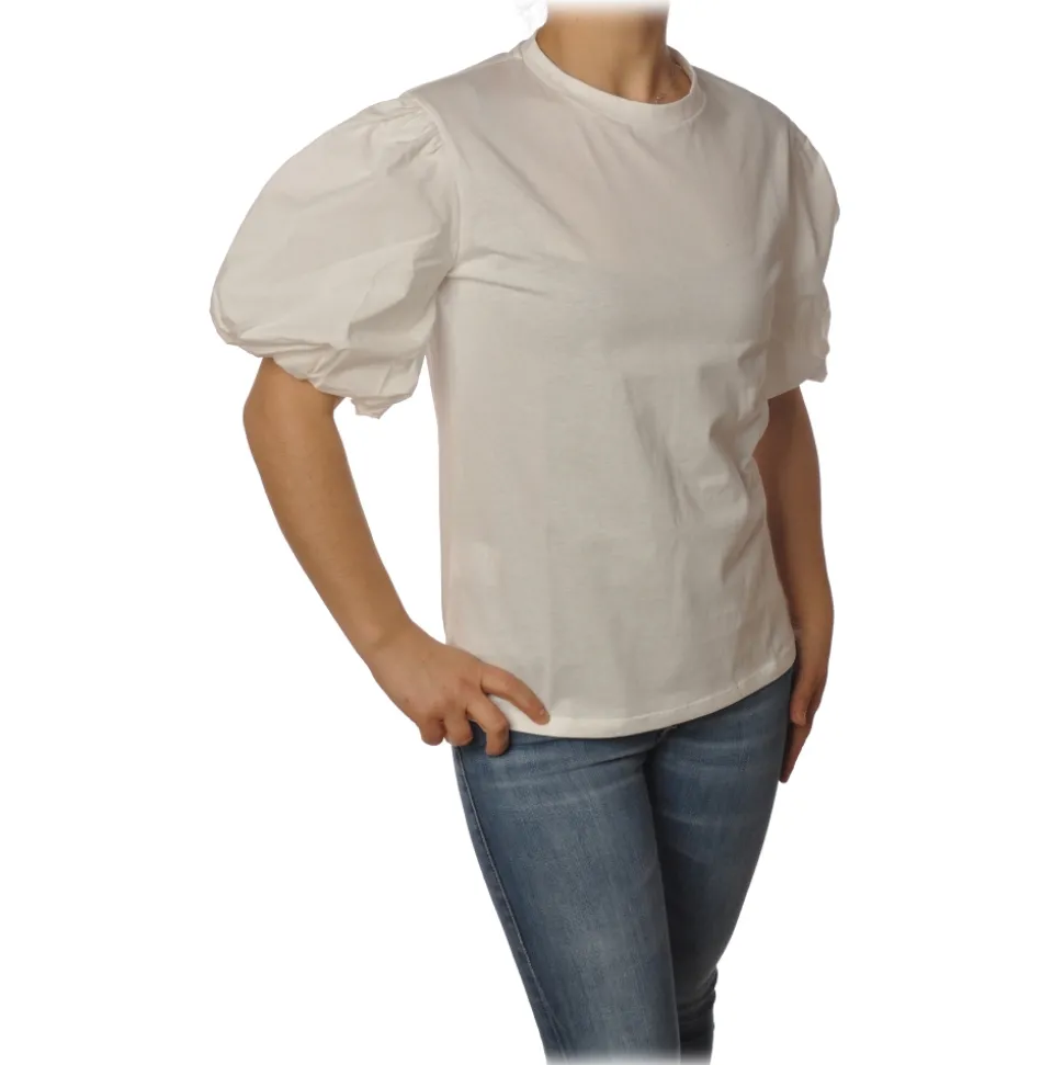 Round-neck T-Shirt, balloon sleeve made of cotton fabric, Pinko.