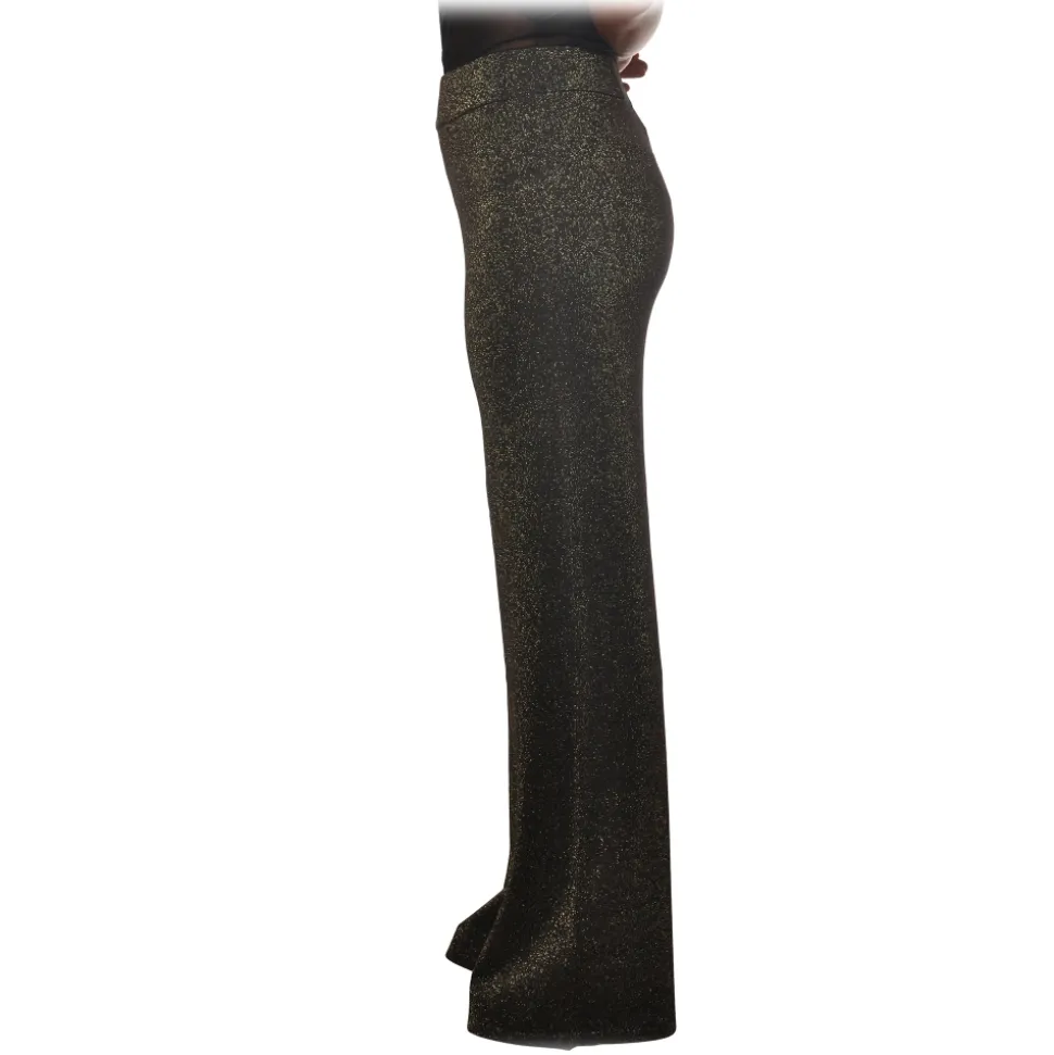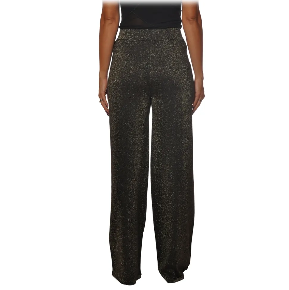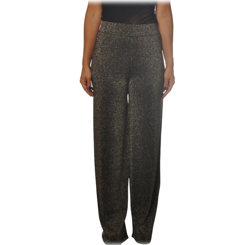 Palazzo trousers with elasticated waist made in lurex knit, Pinko.