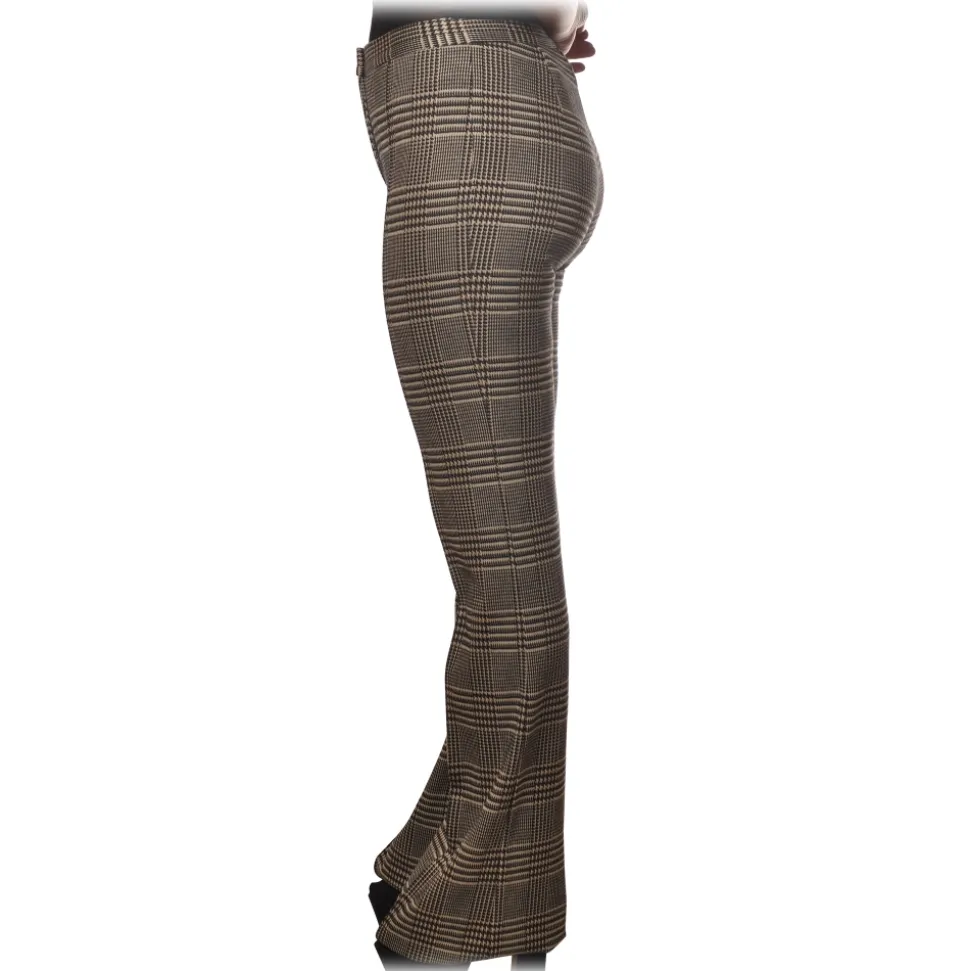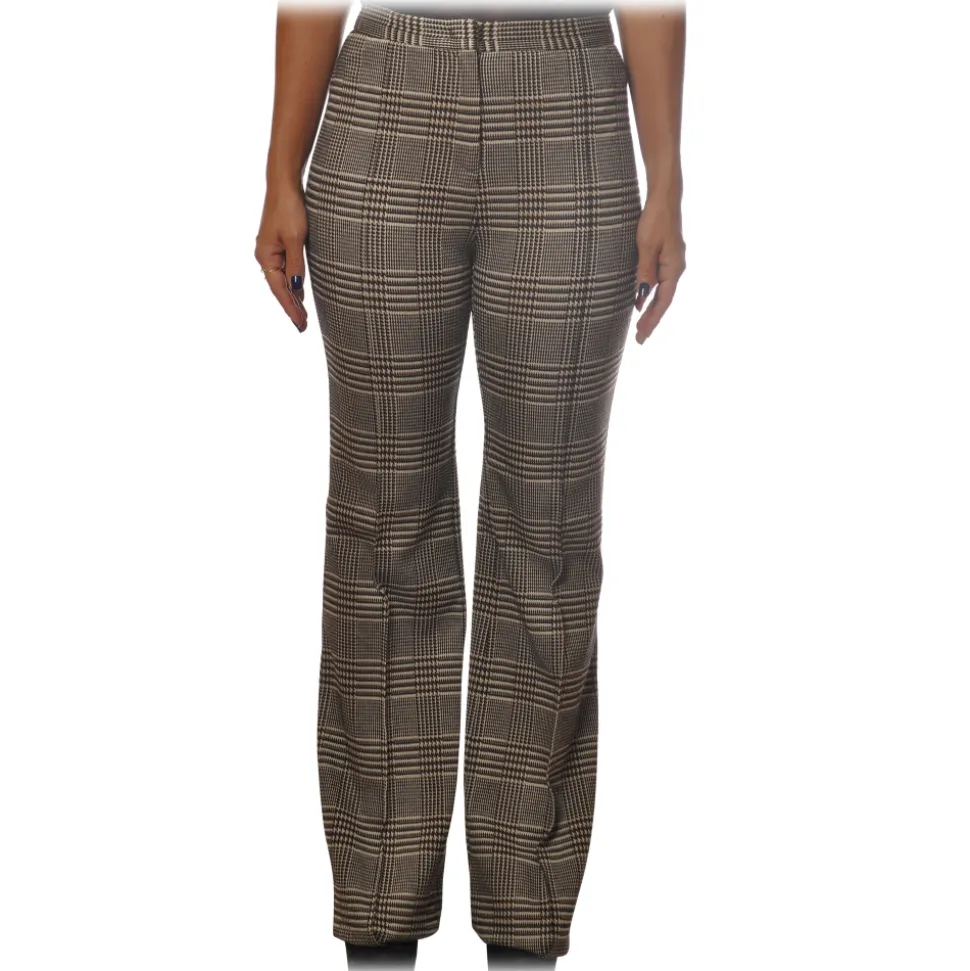 Pinko – Trousers Hulka Flared Leg in Galles Motif – Beige/Black – Trousers – Made in Italy – Luxury Exclusive Collection