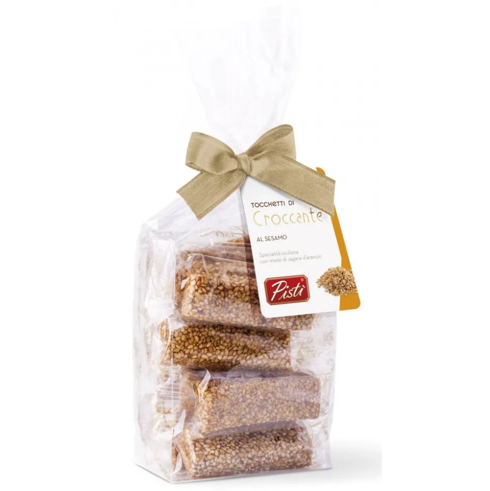 Crunchy with almond, pistachio and hazelnut flavors, sealed one by one in flow-pack and packed in pretty cellophane sachets to show off how good they are inside.