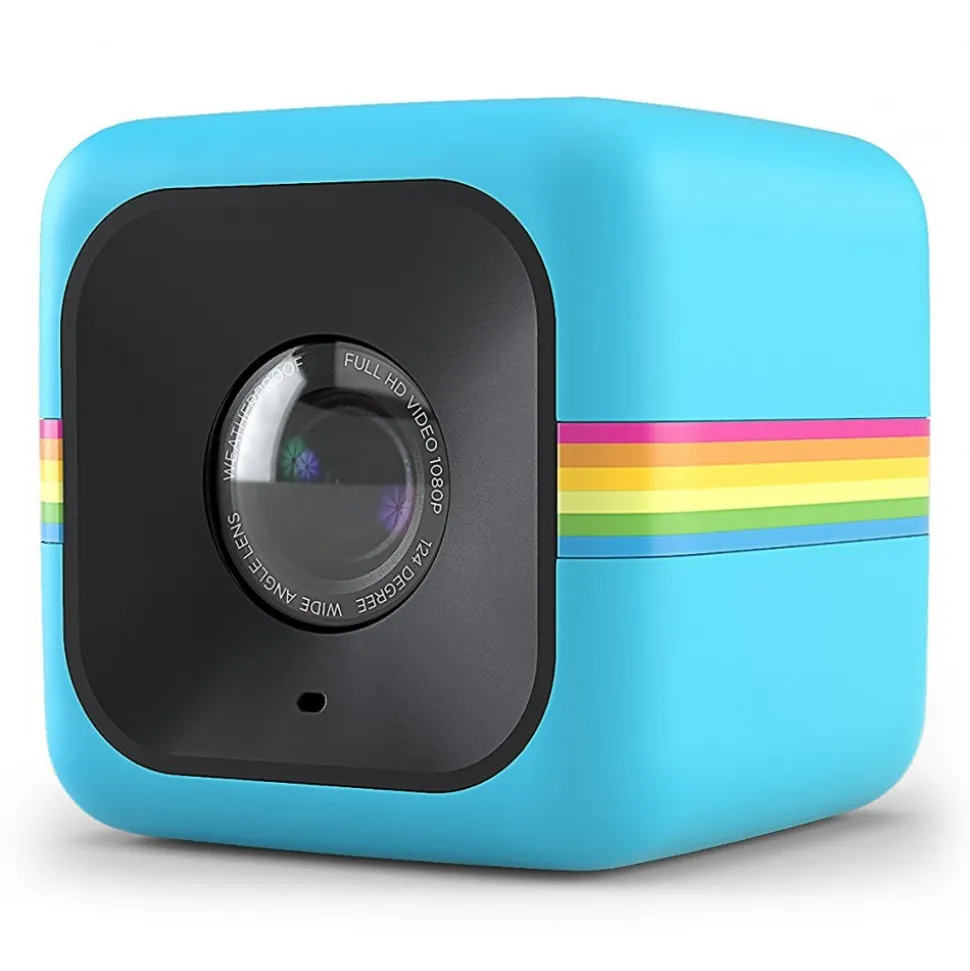 Huge, out-of-the-box fun. In little more than 1 cubic inch. – Standing at just 35mm, the Polaroid CUBE is here to prove that the best things do indeed come in small packages. This tiny action camera supports Micro SD cards up to 32 GB, and is ready to capture your most exciting moments in full HD video or highresolution images. So if youโre living a life thatโs fit for film, make the CUBE your constant companion. It is weatherproof and shockproof, and more than capable of handling anything you throw at it. But not only does it look after itself, it looks after you: With a 124ยฐ wide-angle lens, it sees the big picture and bears witness to your most outrageous shtick.