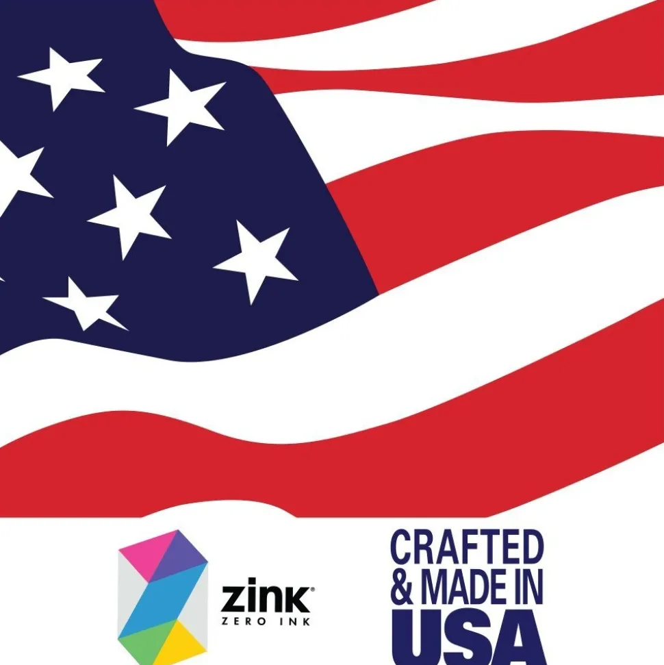 – Utilizes ZINK photo paper with an advanced composite material embedded with cyan, yellow, and magenta dye crystal and with a protective polymer overcoat