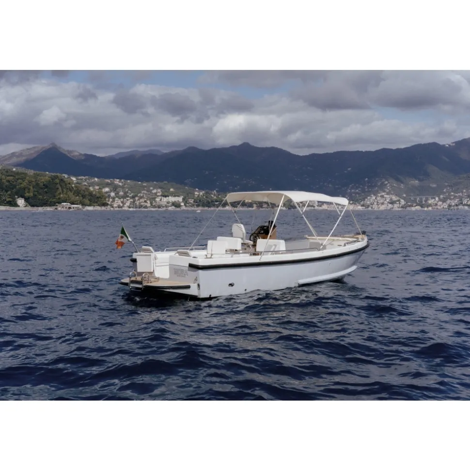 Mora is a boat of smaller size and performance and suitable for tours in areas located near our Portofino and for a clientele made up of small families or couples who want to spend a day immersed in the colors and nature that the surrounding areas are capable of. to offer. The stern area includes a hatch that guarantees a very simple and easy descent into the sea, which is joined by a space with comfortable benches for relaxing in peace.