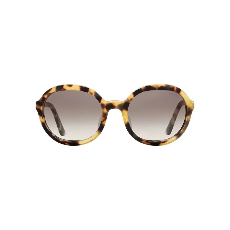 Prada Ultravox collection sunglasses. Feminine cat-eye silhouette with soft, rounded lines. Prada lettering logo.