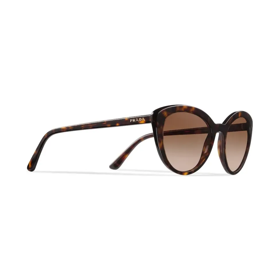 Prada Ultravox collection sunglasses. Feminine cat-eye silhouette with soft, rounded lines. Prada lettering logo.
