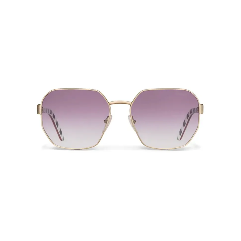 Oversized sunglasses with a retro mood. The geometric shape of the lenses is highlighted by the contemporary metal trims. Prada lettering logo.