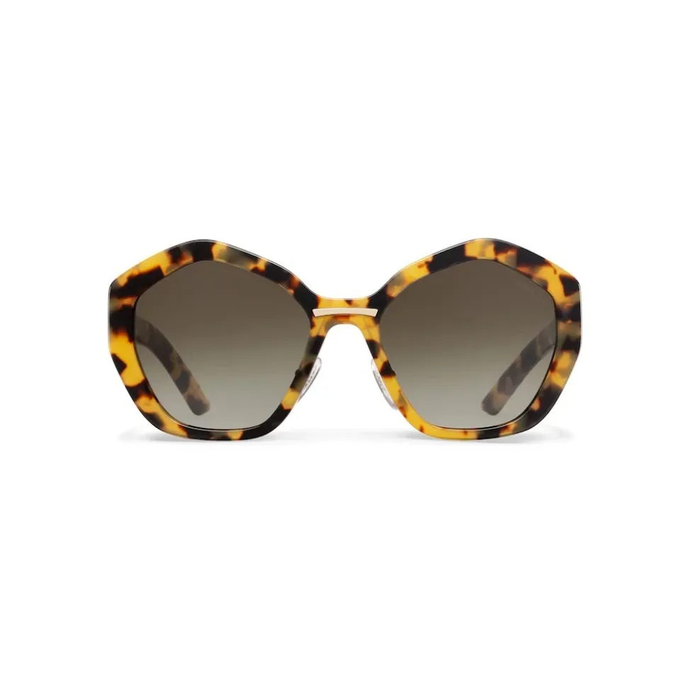 Oversized sunglasses with a refined, irregular design. The acetate frame is characterized by an elegant contrasting insert on the bridge. Prada lettering logo.