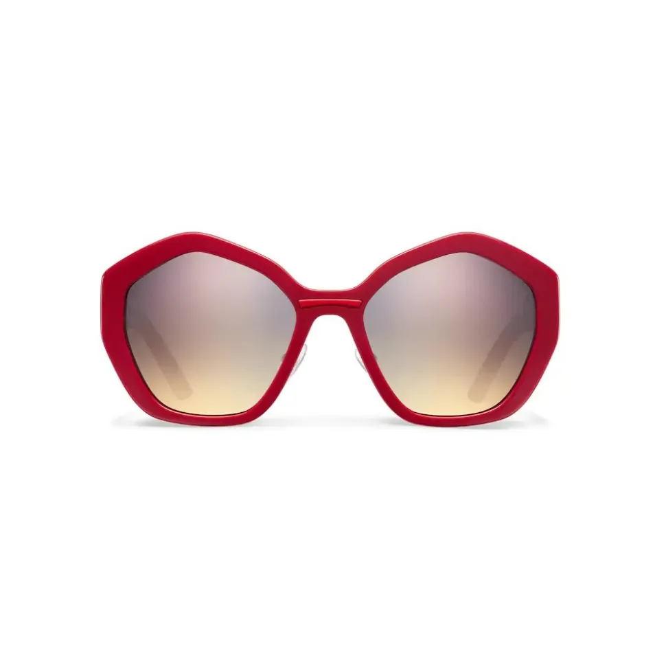 Oversized sunglasses with a refined, irregular design. The acetate frame is characterized by an elegant contrasting insert on the bridge. Prada lettering logo.