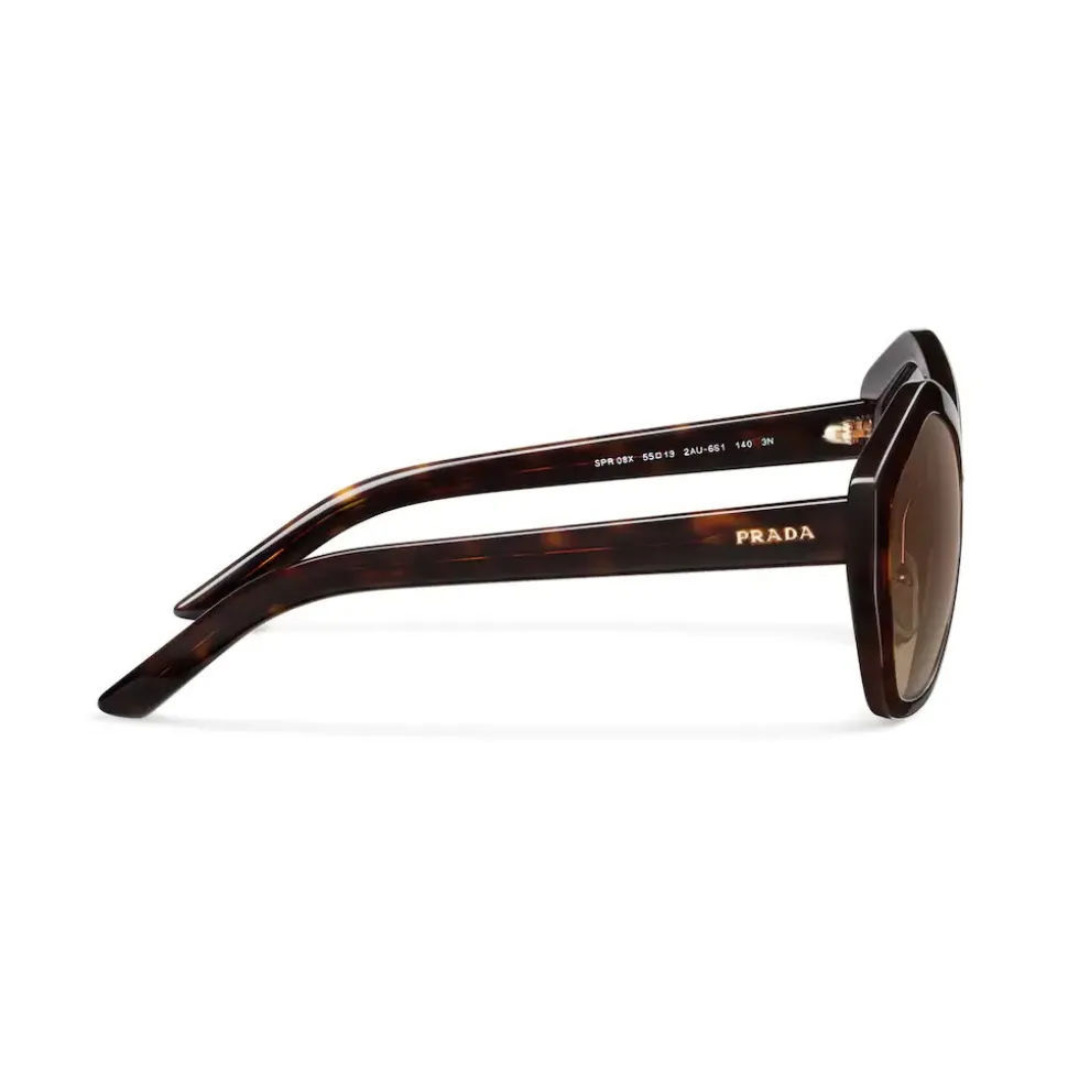 Oversized sunglasses with a refined, irregular design. The acetate frame is characterized by an elegant contrasting insert on the bridge. Prada lettering logo.