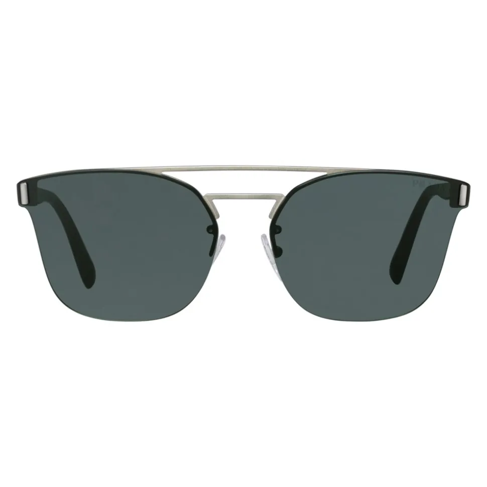 Squared model with contemporary and essential design. Rimless and flat lenses supported by a very thin metal top bar with a distinctive double bridge. Linear acetate bars with Prada Lettering logo.