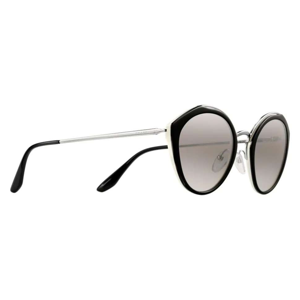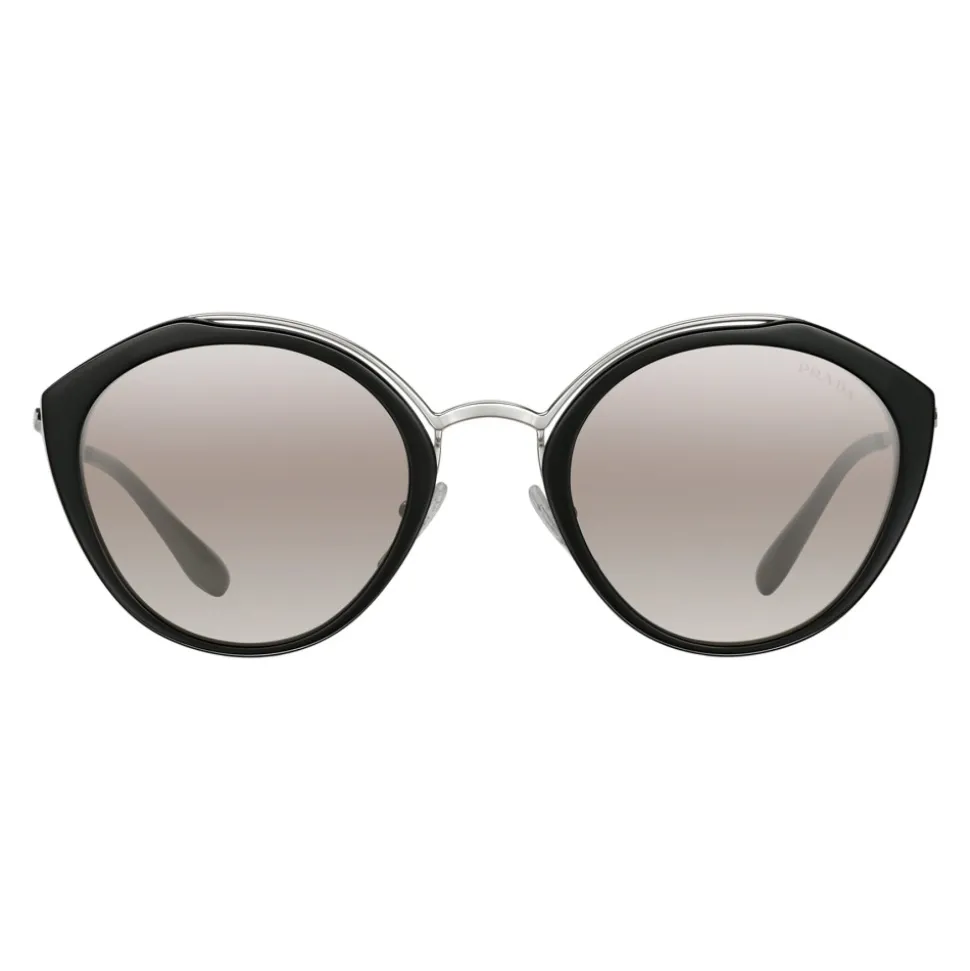 Elegant pantos silhouette made of acetate. Sophisticated construction of the front with distinctive upper profile in polished metal. Metal rods with engraved Prada Lettering Logo.