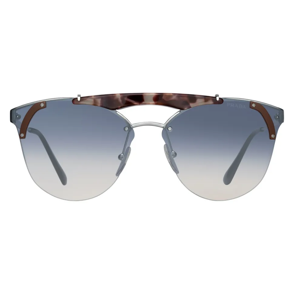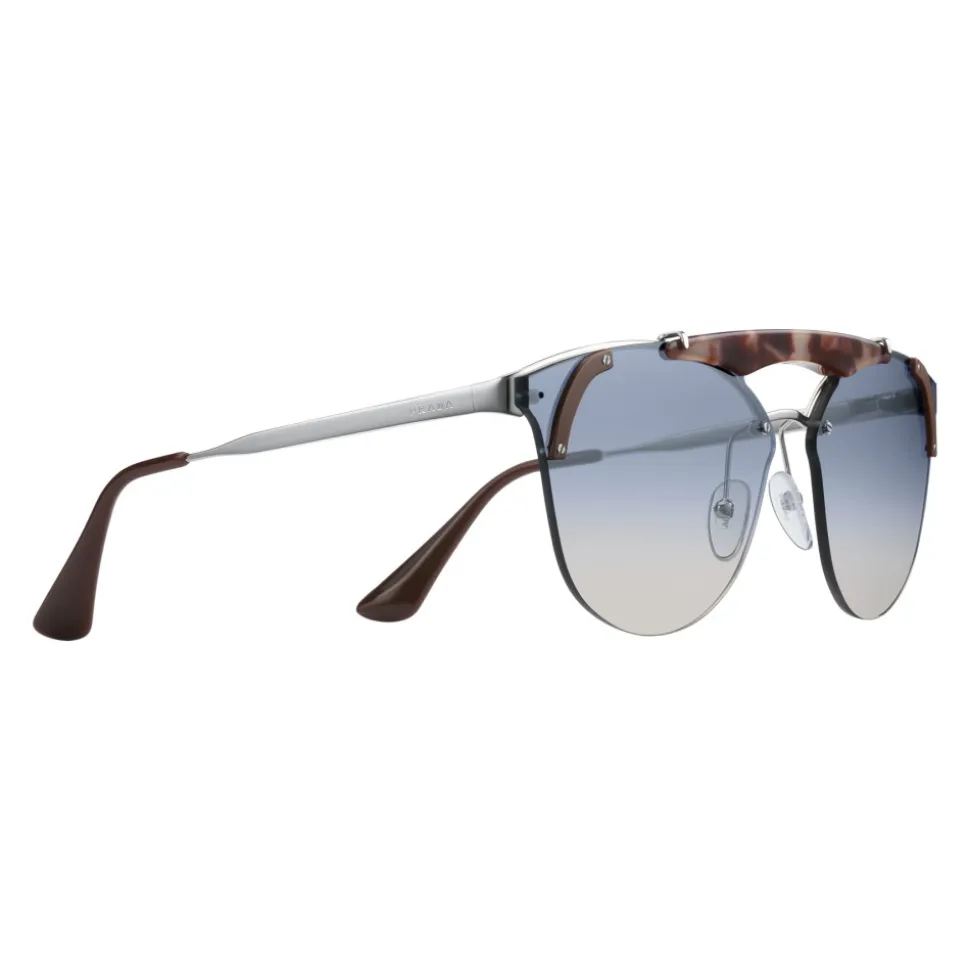 Elegant cat silhouette made of metal. Flat rimless lenses enriched by distinctive applications with visible details and an acetate top bar. Metal bars with engraved Prada Lettering logo.