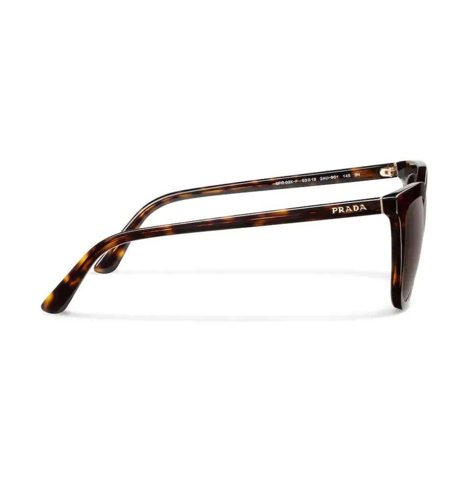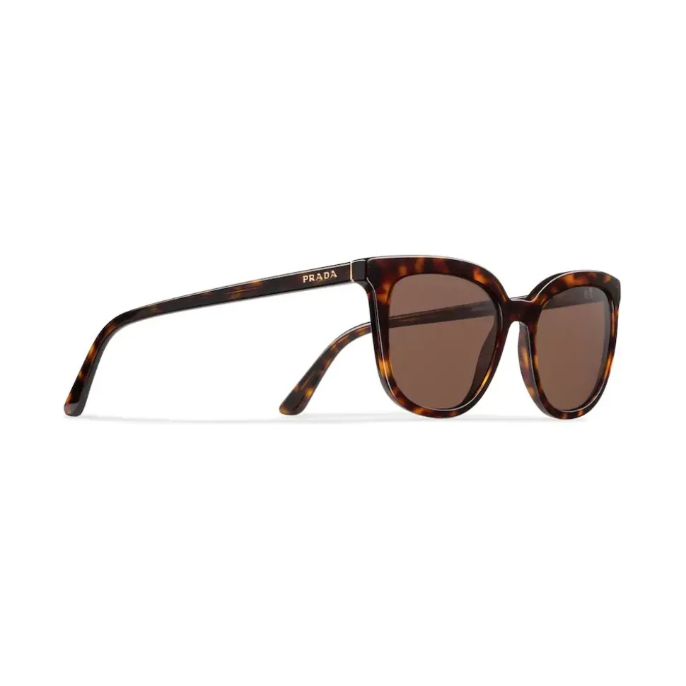 Square sunglasses with an elegant slim acetate frame front that reflects contemporary, feminine allure. Prada lettering logo.
