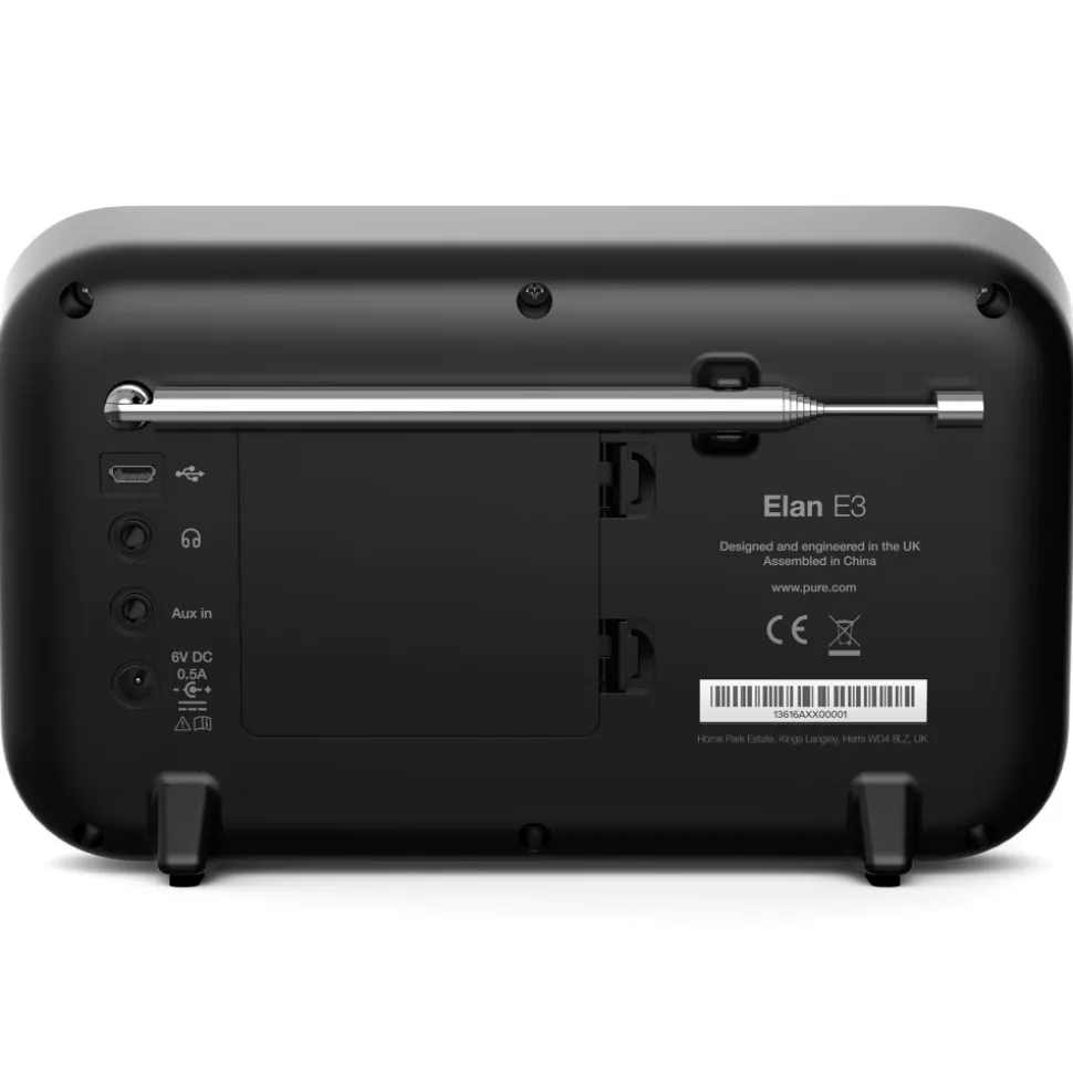 Elan E3 is the practical contemporary radio from Pure, with DAB/DAB+ and FM, you can listen to all of your favourite radio stations in crystal clear quality. The vibrant colour display and simple controls makes accessing stations and using Elan E3 a joyful experience. Truly versatile, with the option of being powered by mains or battery, Elan E3 can be enjoyed anywhere in or out of the home. Available in a range of finishes, Elan E3 will add a touch of colour to your living space.