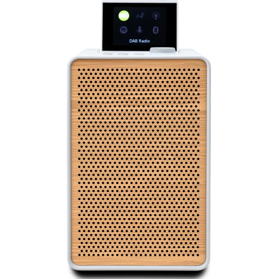 Pure – Evoke Spot – Cotton White with Cherry Wood Grill – Wood Edition Compact Music System