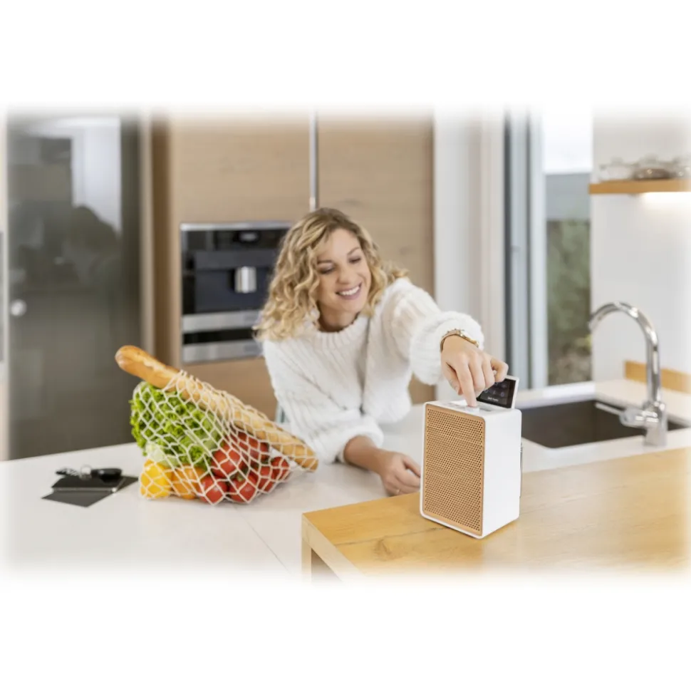 The Evoke Spot is not only very smart in its format, but also a smart radio. As such, the Evoke Spot is ready for any reception quality, combining traditional analogue radio (FM), digital radio (DAB) and Internet connectivity for an even more reliable and robust listening experience. A smart radio offers more options, more robust radio reception, on-demand audio streaming of podcasts and the ability to easily make sure the device stays up to date with updates. In the unlikely case of poor FM/DAB+ signals, the Evoke Spot is prepared with over 85,000 Internet radio stations and podcasts from around the world via through Internet connection.