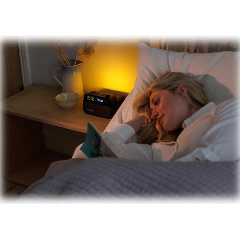 The integrated night lamp is fully dimmable, providing gentle lighting that can be combined with any alarm or sleep timer. The sunrise function gradually increases light to simulate a natural wake-up.