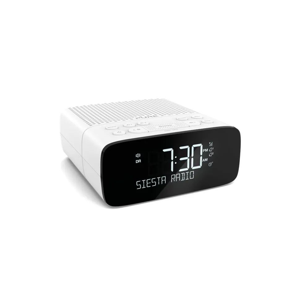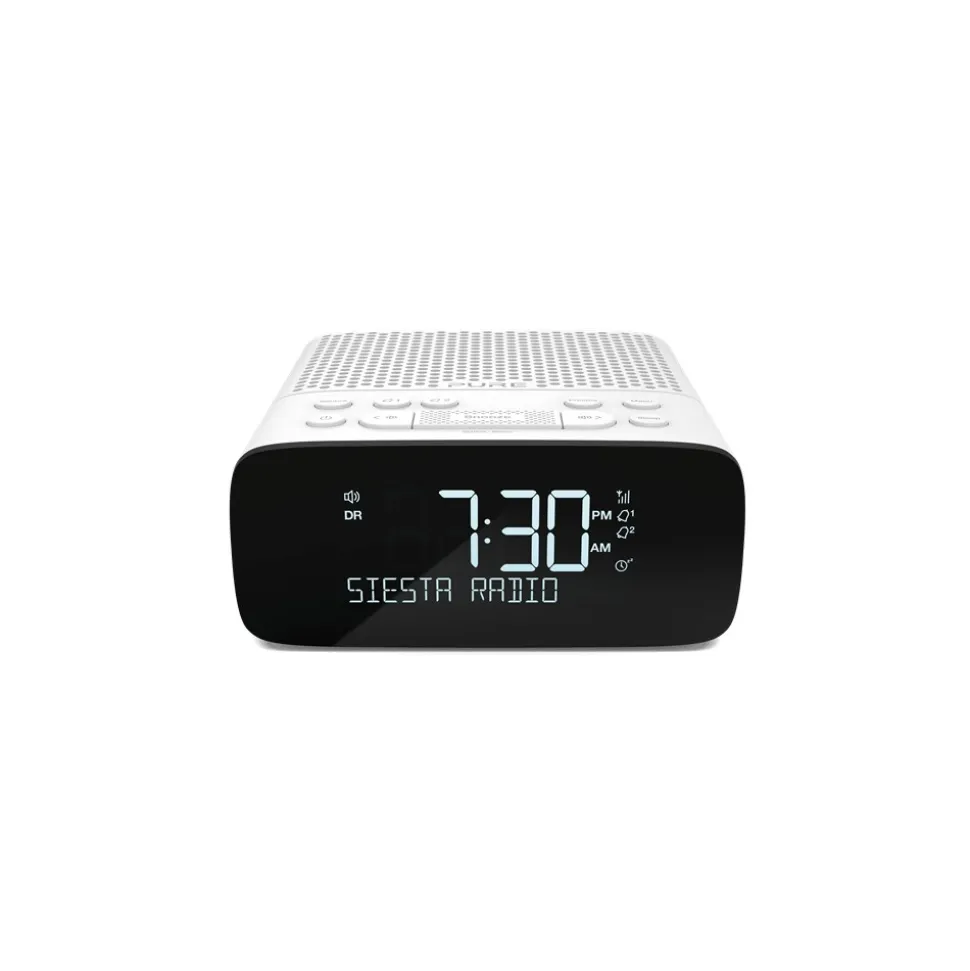 Siesta S2 is the ideal bedside radio from Pure, with DAB/DAB+ and FM, you can wake to all of your favourite radio stations in crystal clear quality. The large, edgeless, CrystalVue display allows you to read the time or radio information from anywhere in the room. User friendly controls and a large textured snooze button allow you to operate Siesta S2 with minimal effort. Available in a graphite or cool white finish, Siesta S2 has been designed to complement the décor of your bedroom.