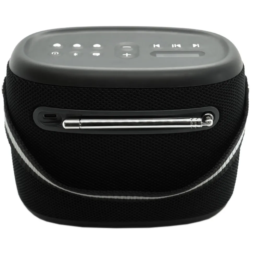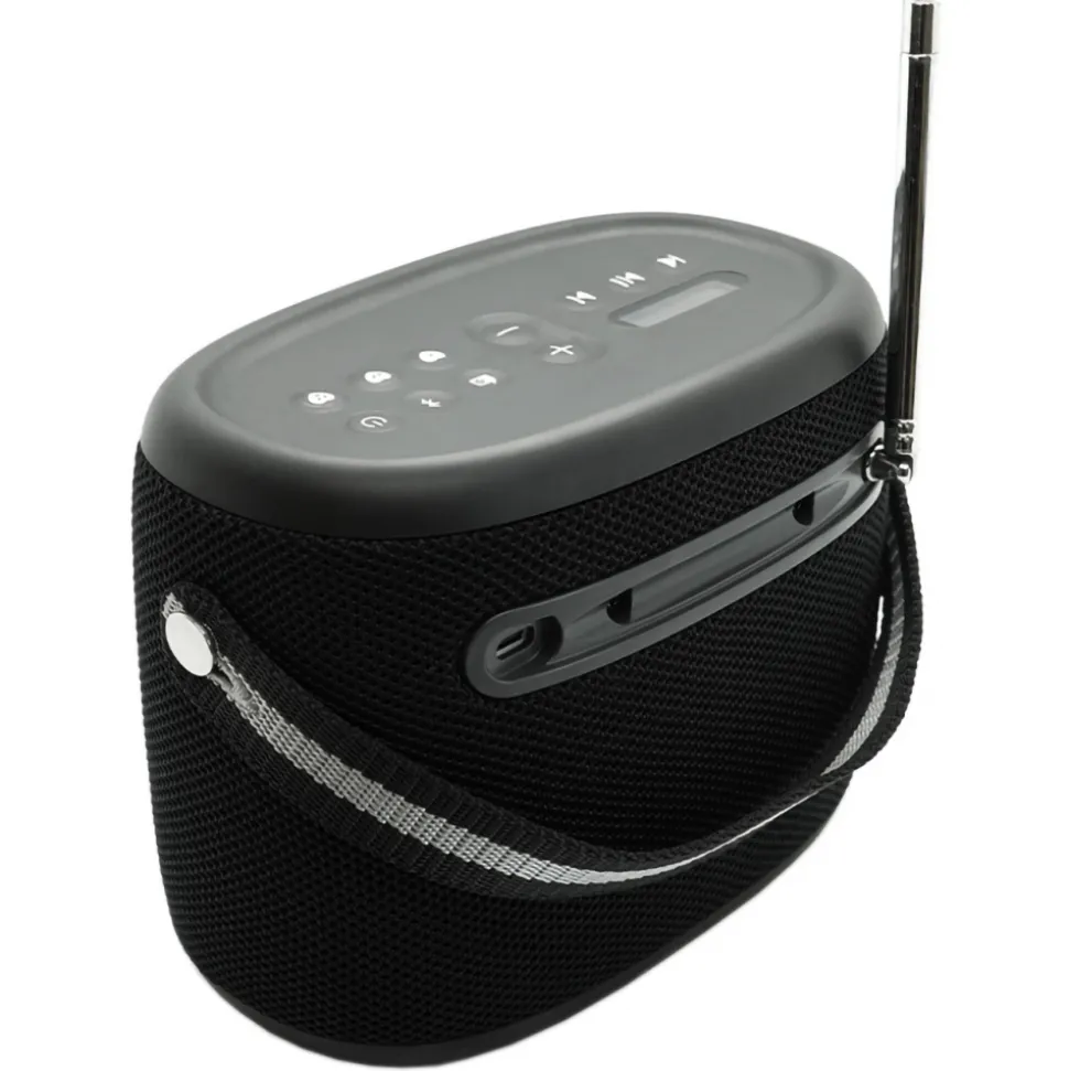 Featuring a soft webbing carry handle, the Woodland speaker is easy to grab and go or hang from a convenient peg.