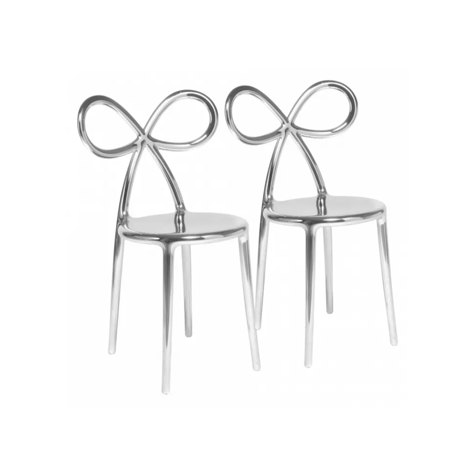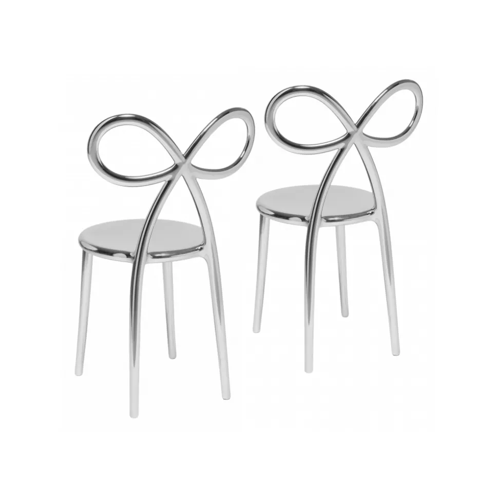 Qeeboo – Ribbon Chair Metal Finish Set of 2 Pieces – Silver – Qeeboo Chair by Nika Zupanc