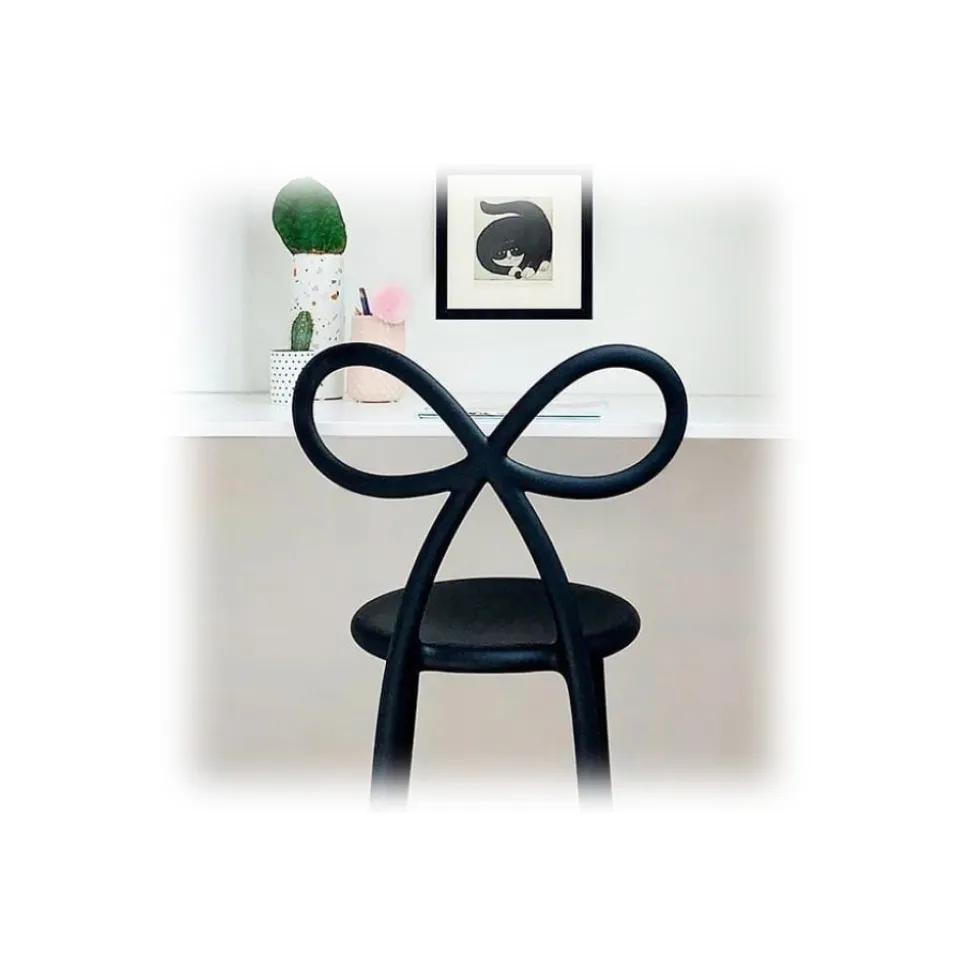 A successful chair, with a strong identity and characterized by a bow designed as a backrest. The bow, a lively symbol of gift and celebration, is translated by the designer with soft, light and essential lines.