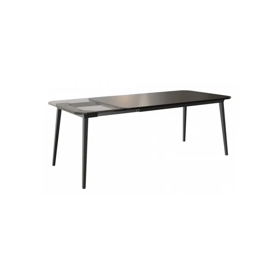 The extendable table can accomodate eight seats, thanks to the module that can be removed from the support surface by adjusting the position of the legs.