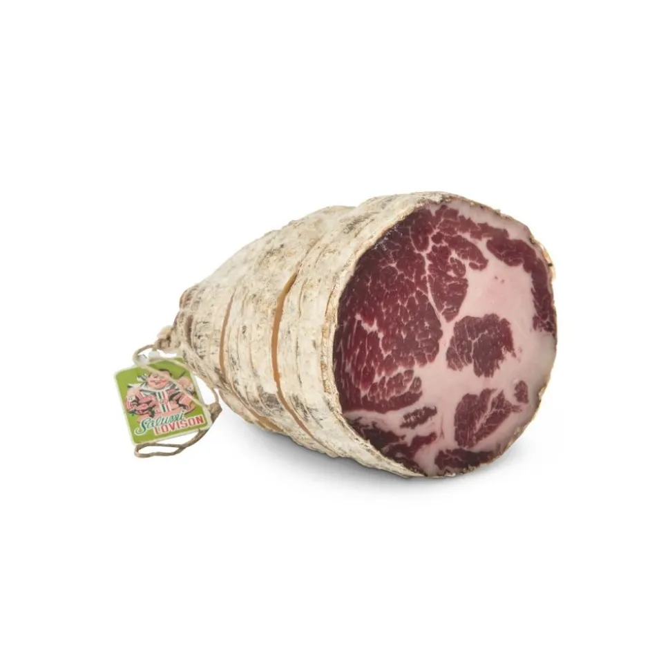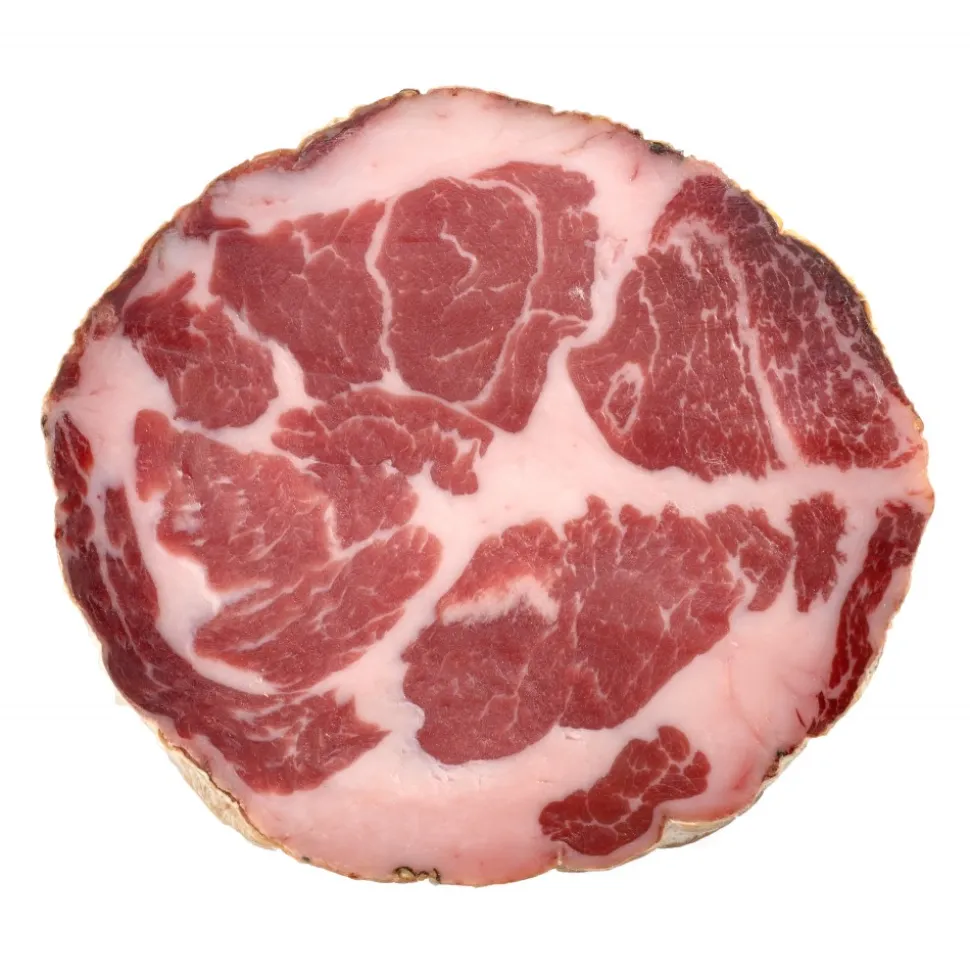 Friulan coppa is produced only with Italian pigs. Expert butchers carefully select the neck cut, only among the heavier animals. The processing is still the old one that can be found in the notes of Agostino.